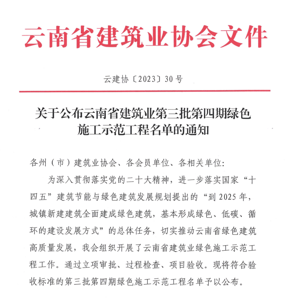 近日,云南省建筑业协会公布《云南省建筑业第三批第四期绿色施工示范工程名单》,由云南省建设投资控股集团有限公司总承包二部实施总包管理的云南省S35永金高速永仁至大姚段建设项目永仁大桥荣获“云南省建筑业绿色施工示范工程”,这也是总承包二部负责施工管理的首个获得该评价的高速公路项目。